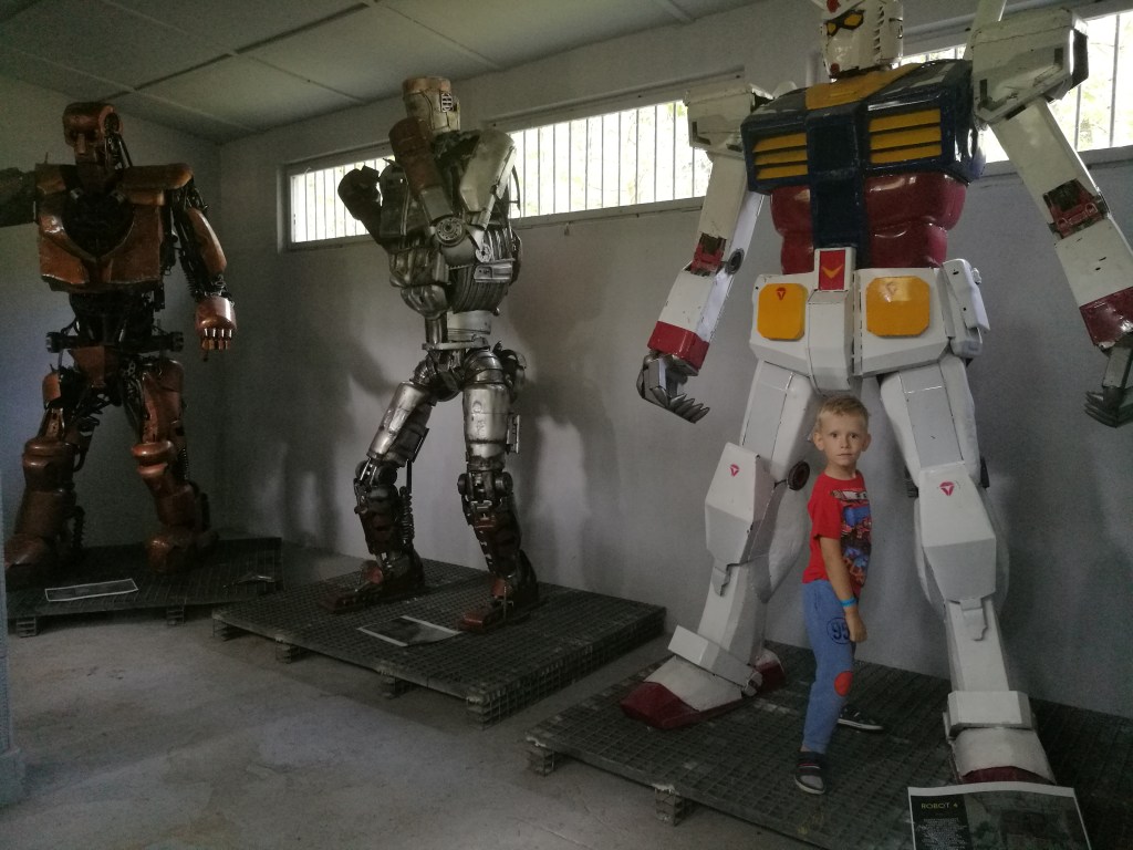 Uwielbiamy to miejsce! To połączenie muzeum, placu zabaw,lasu i miejsca piknikowego.Od Warszawy to ok 40min. drogi ( parking płatny). Znajdziecie tu 300 eksponatów filmowych.kolekcję kilkudziesięciu najsłynniejszych samochodów filmowych, bajkowych, motocykli, robotów, wojowników, a także gigantyczne grzyby, samolot, helikopter, strefę militarną, interaktywne skrzynie muzyczne. Skorzystać tu można także z miejsca piknikowego, sali zabaw, gier xxl, dmuchańców, mini golfa, zjazdy na balonie. Na terenie jest jedna restauracja i cafebus przy figlarni z piłkami.Dzieci uwielbiają to miejsce,bo mogą wcielić w rolę znanych postaci.